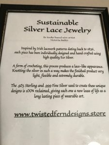 Twisted Fern’s Silver Lace Jewelry and Sculpture marries 19th century lacework traditions with the geometrical complexity of the natural world. Crocheted Silver is strong, yet light, and allows great scope for creativity and a wide range of design.