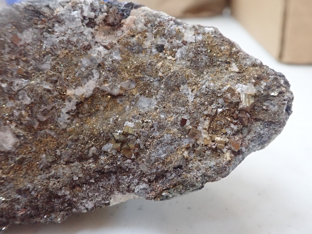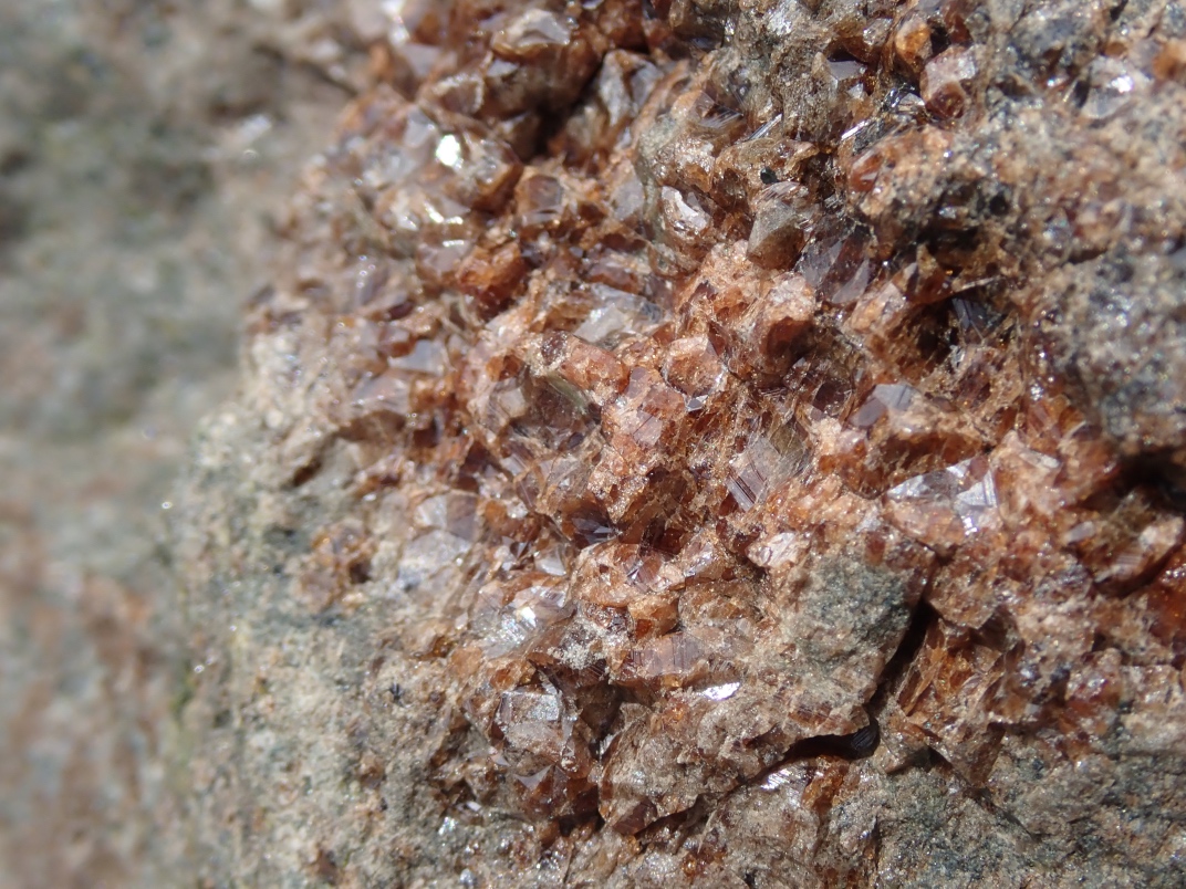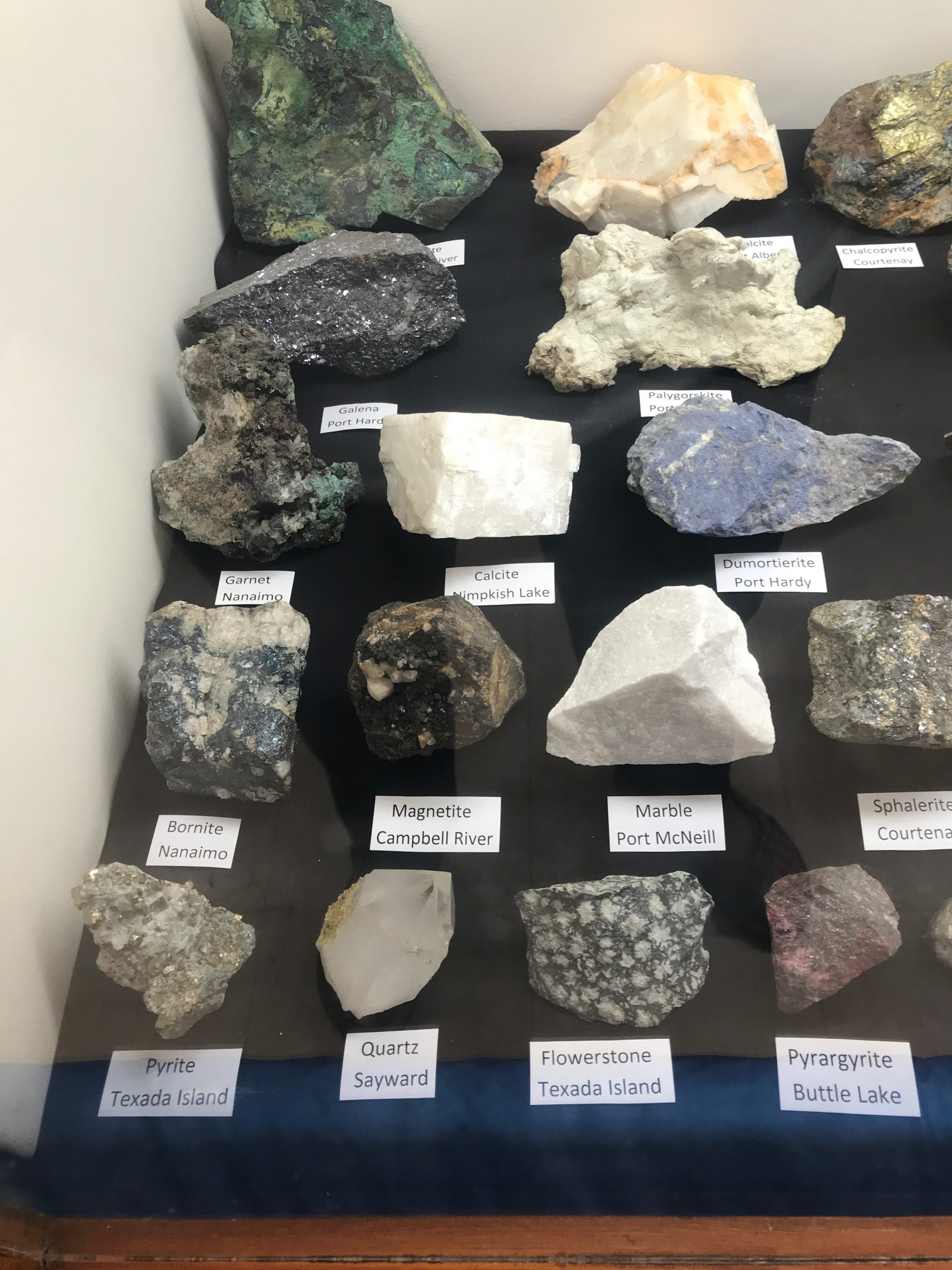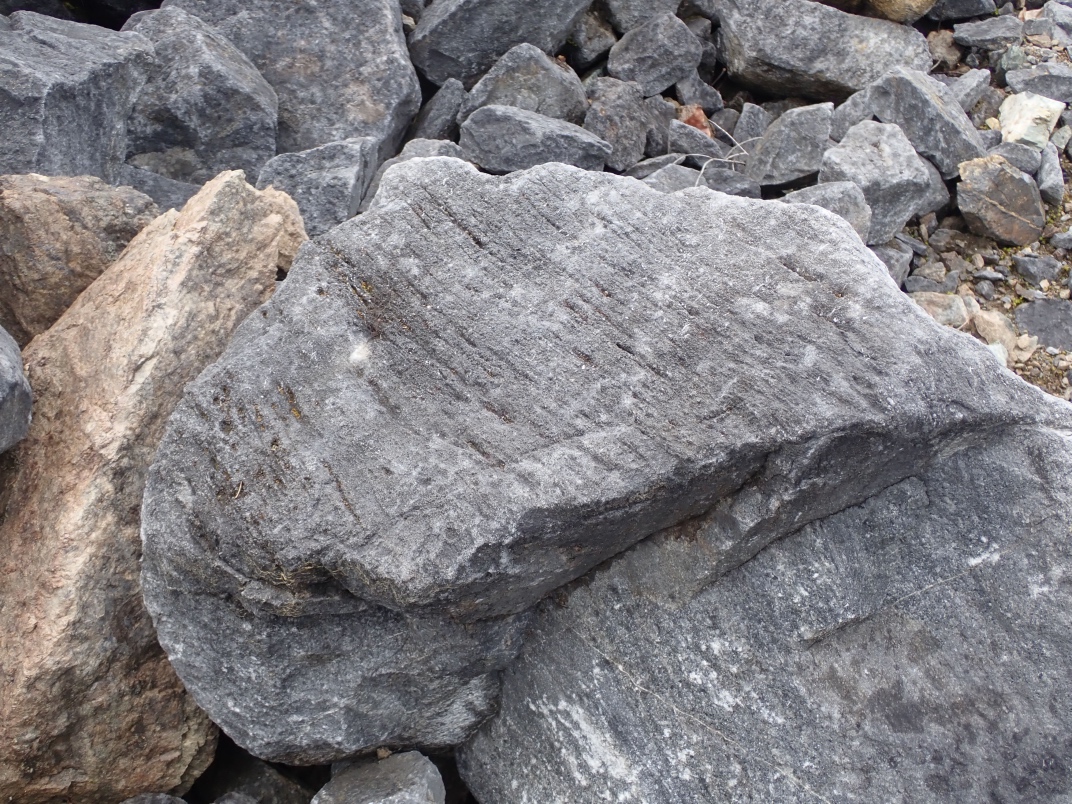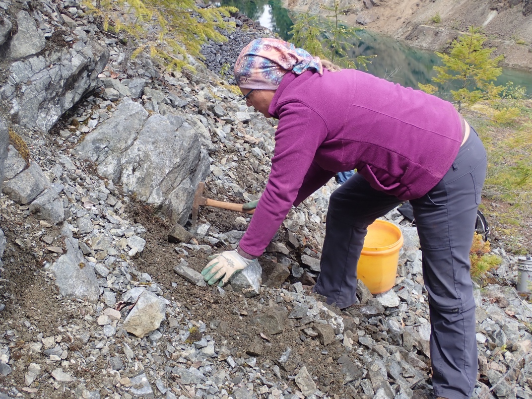 The Argonaut mine is an idle open pit iron mine. Active from 1951 until 1957 its minerals were used in the steel manufacturing industry. Minerals to be found are magnetite, garnet skarn, epidote skarn, calcite, marble, pyrite, limestone, diorite and actinolite. The trip was led by Jim McKinnon (Parksville club) who provided good interpretation of what was available and how to find it.