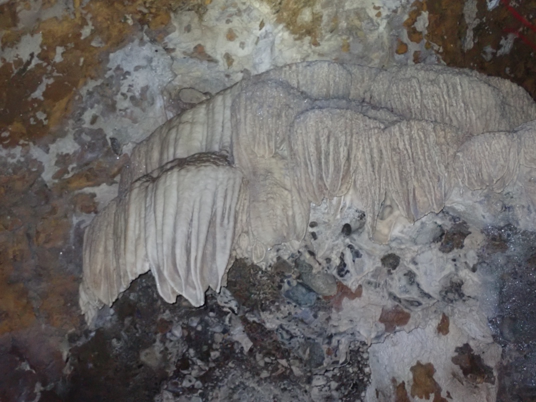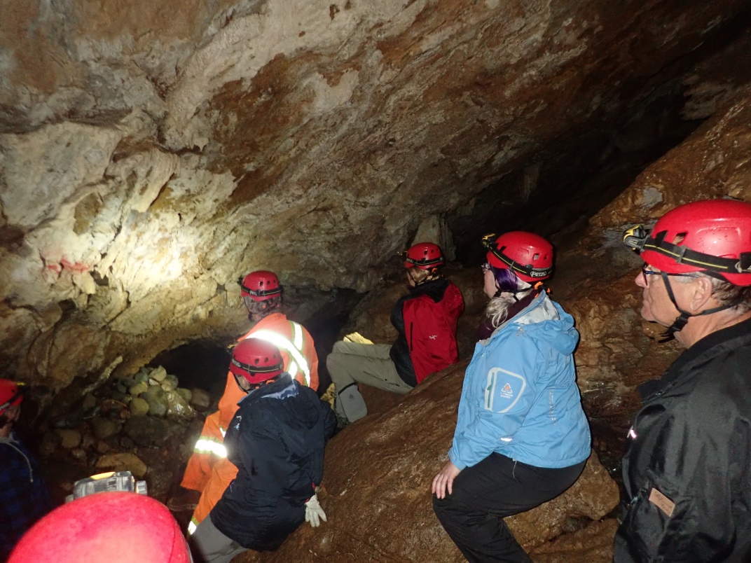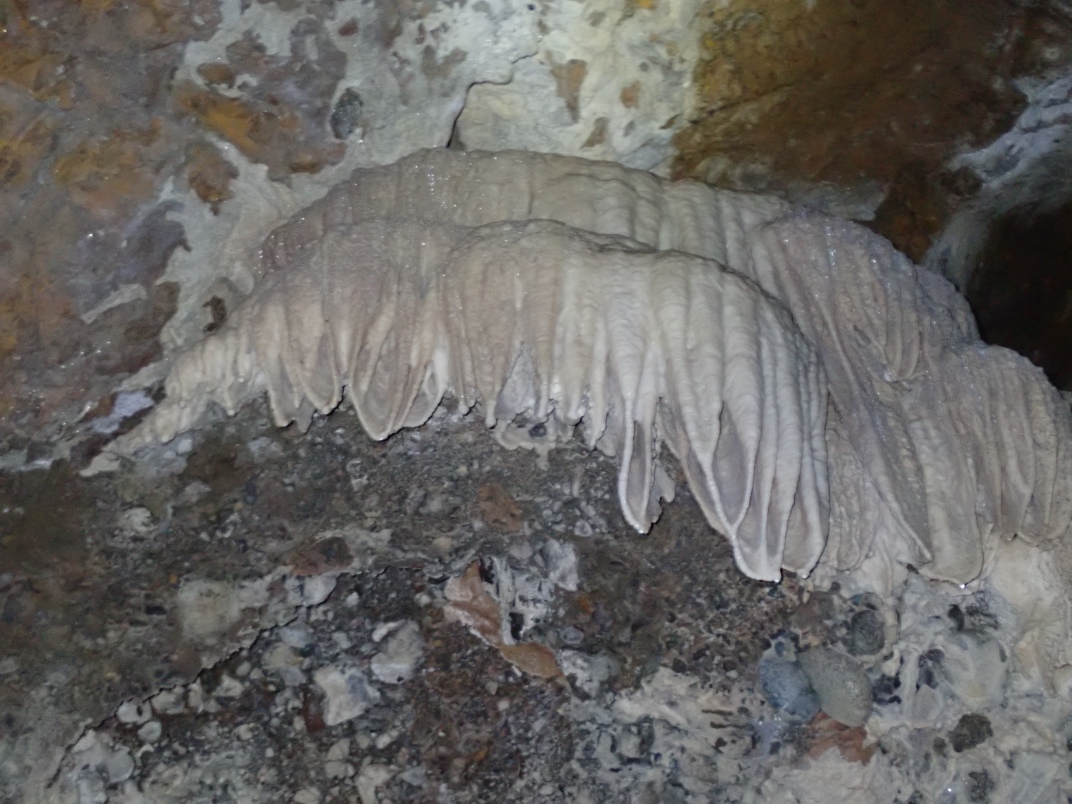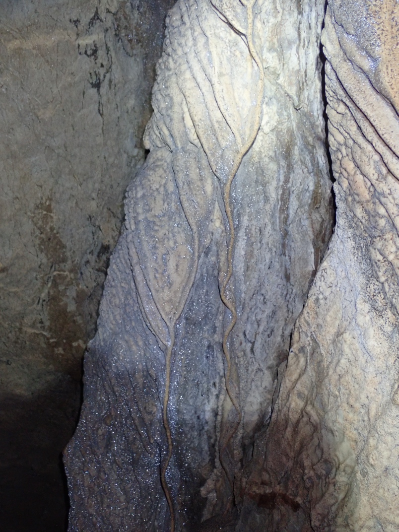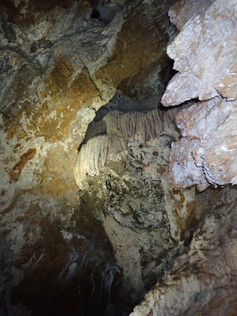 At the guide centre we were provided with helmets and headlamps. Our guide, Ryan, took us on a 20 minute walk uphill to the cave entrance. The walk is dotted with interpretive signs of the landscape. The entrance to Big Bend Cave is gated and locked. The floor of the cave is in its natural state as a river bed and requires some nimbleness to navigate.