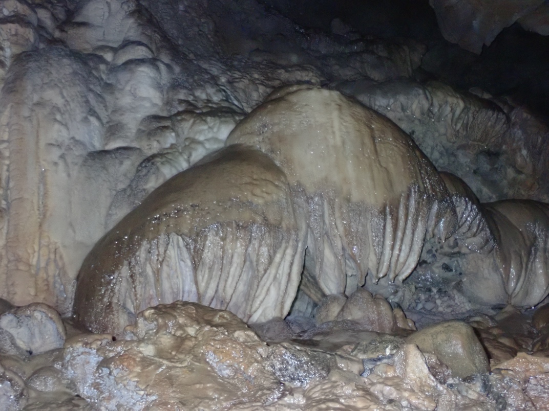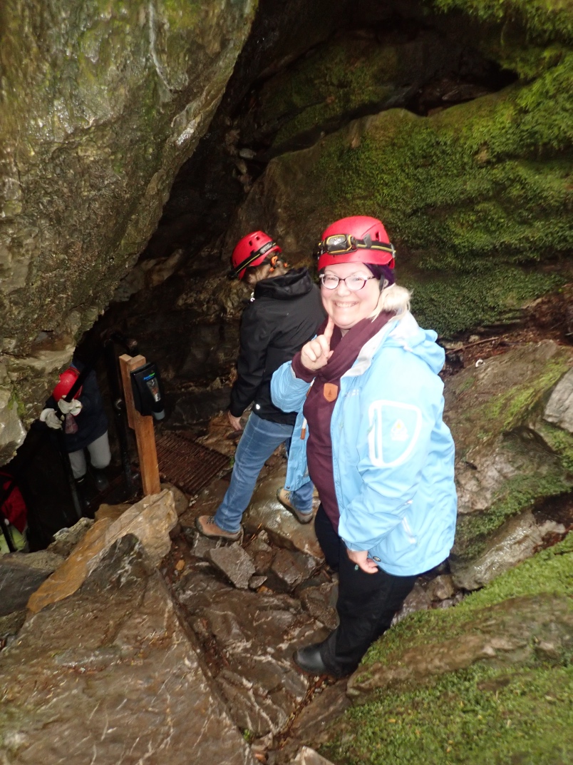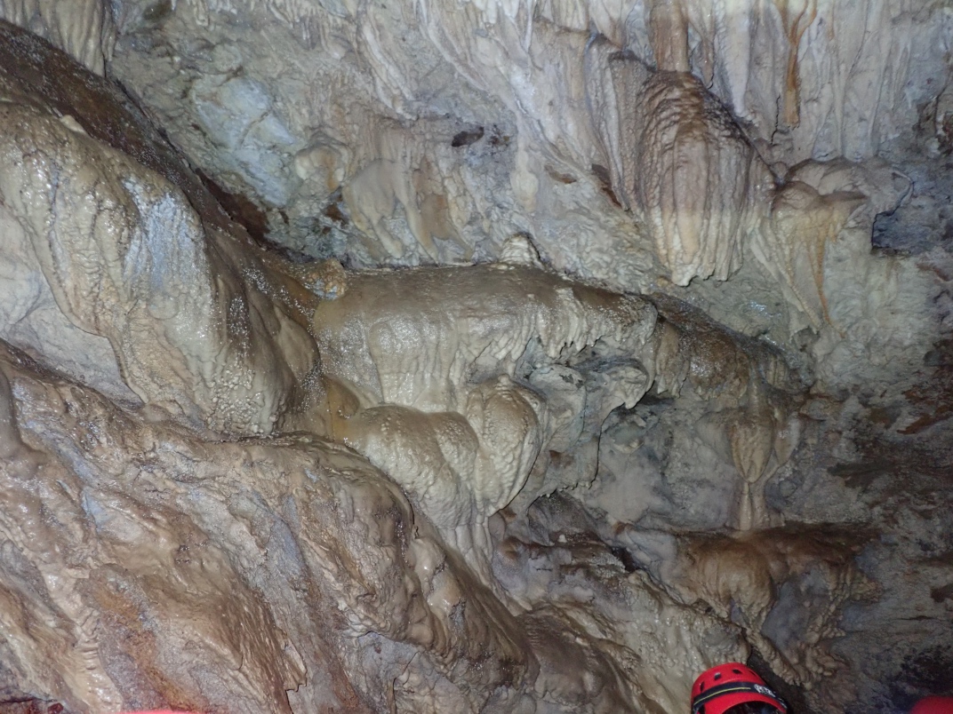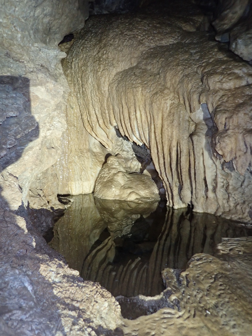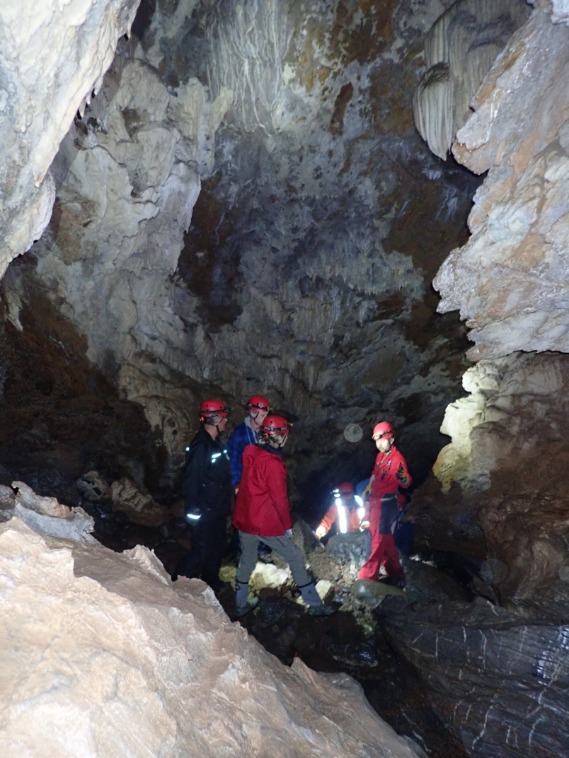 At the guide centre we were provided with helmets and headlamps. Our guide, Ryan, took us on a 20 minute walk uphill to the cave entrance. The walk is dotted with interpretive signs of the landscape. The entrance to Big Bend Cave is gated and locked. The floor of the cave is in its natural state as a river bed and requires some nimbleness to navigate.