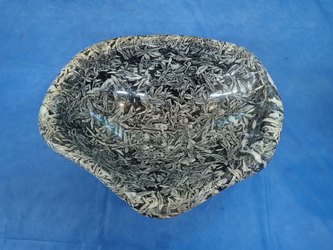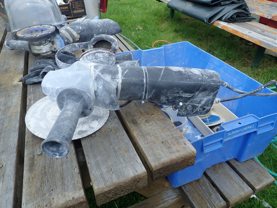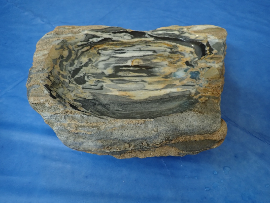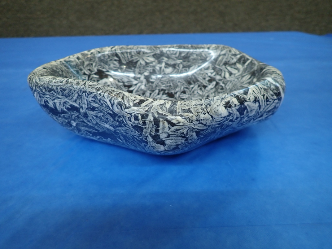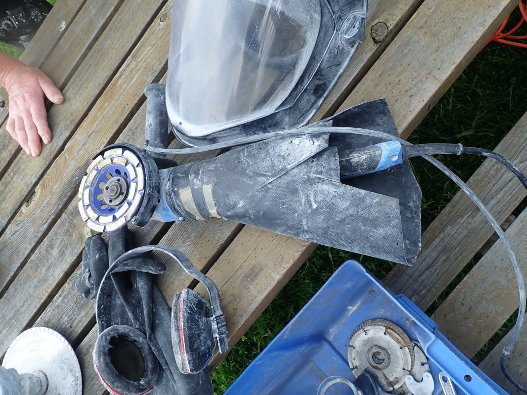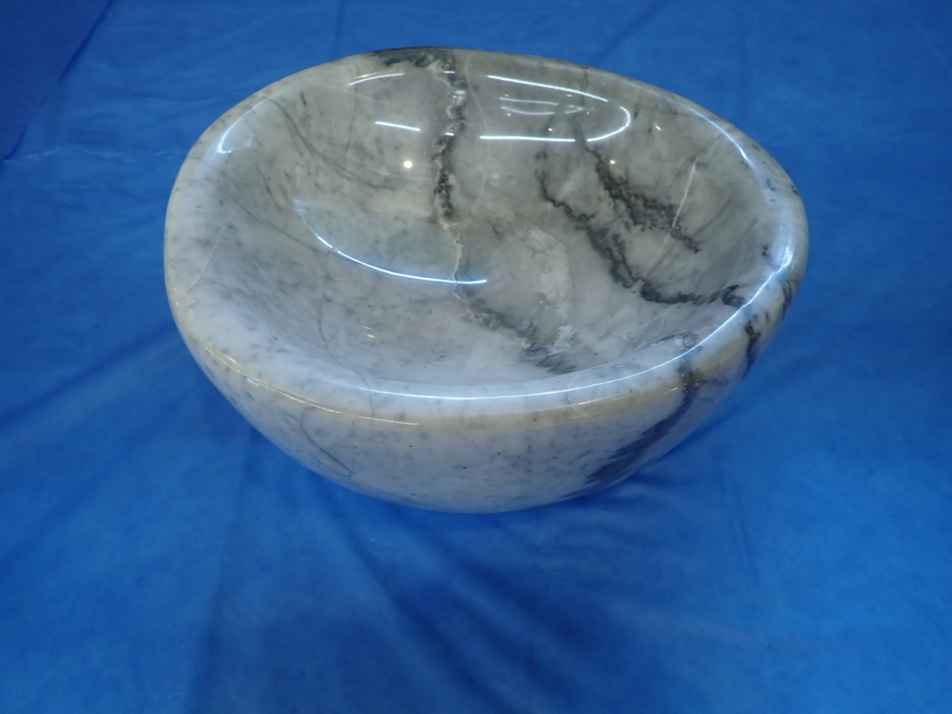 Gary Veitch from the Duncan club demonstrated how he carves rock bowls. He uses a Makita Wet Stone polisher that he has modified to keep the powdered rock out of the workings. Gary shapes and sands the outside before starting on the inside. It takes a couple of days to produce a finished bowl from a rock.