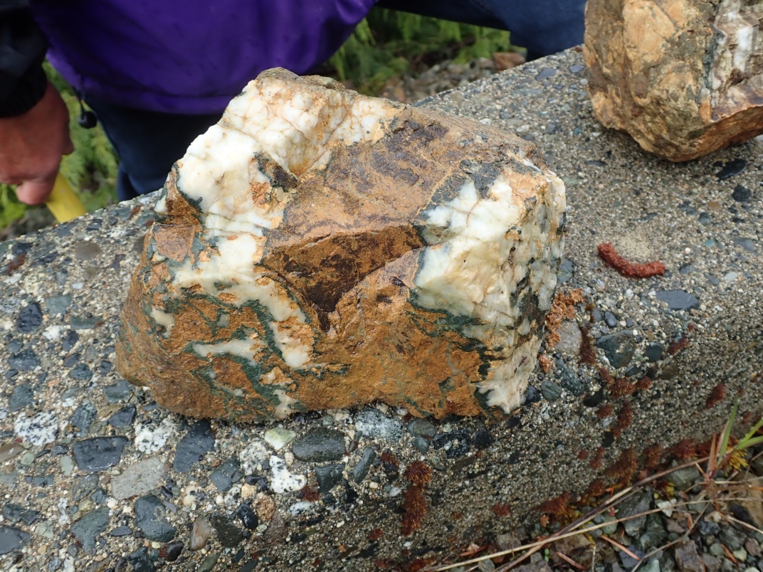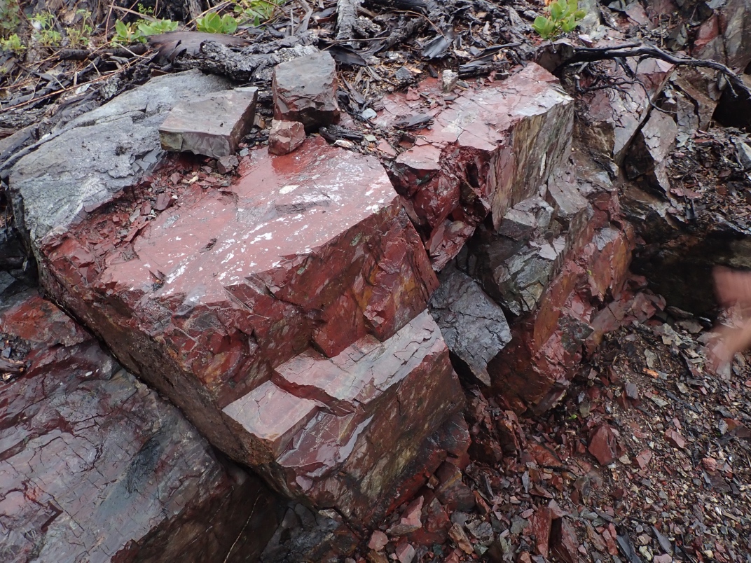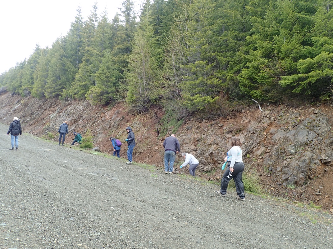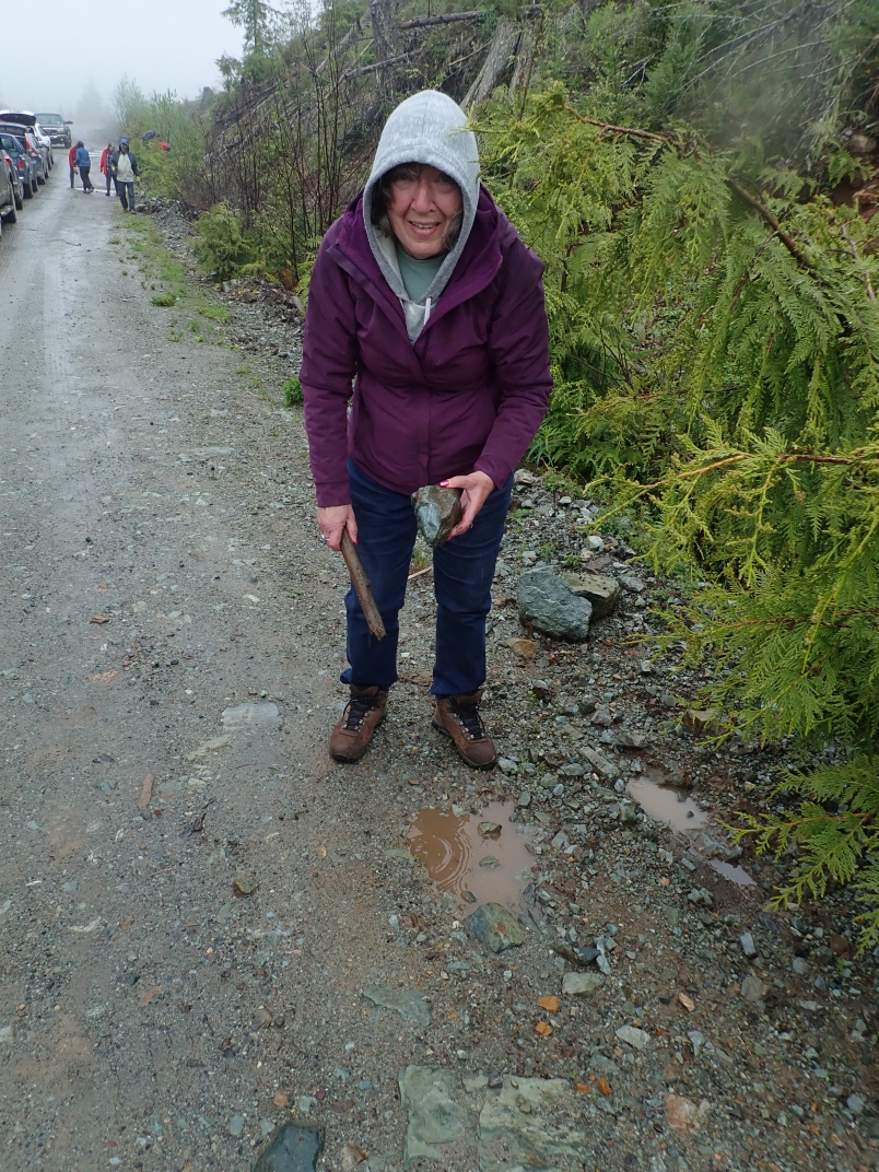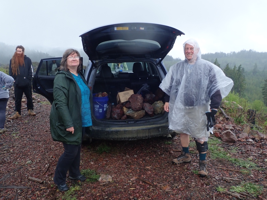 The trip to Mt Arrowsmith afforded the chance to see Dallasite in its original form as part of basalt pillow lava as well as red, green, blue(ish) and purple jaspers. Thanks go to Jim Jeffs (Parksville club) for leading the trip, providing insightful explanations and organizing the gates to be unlocked for access.