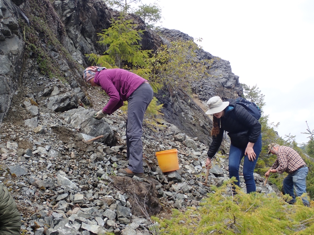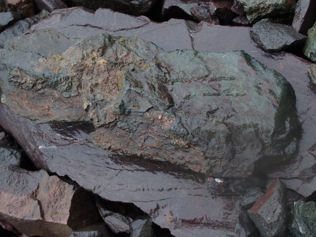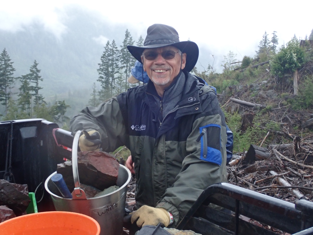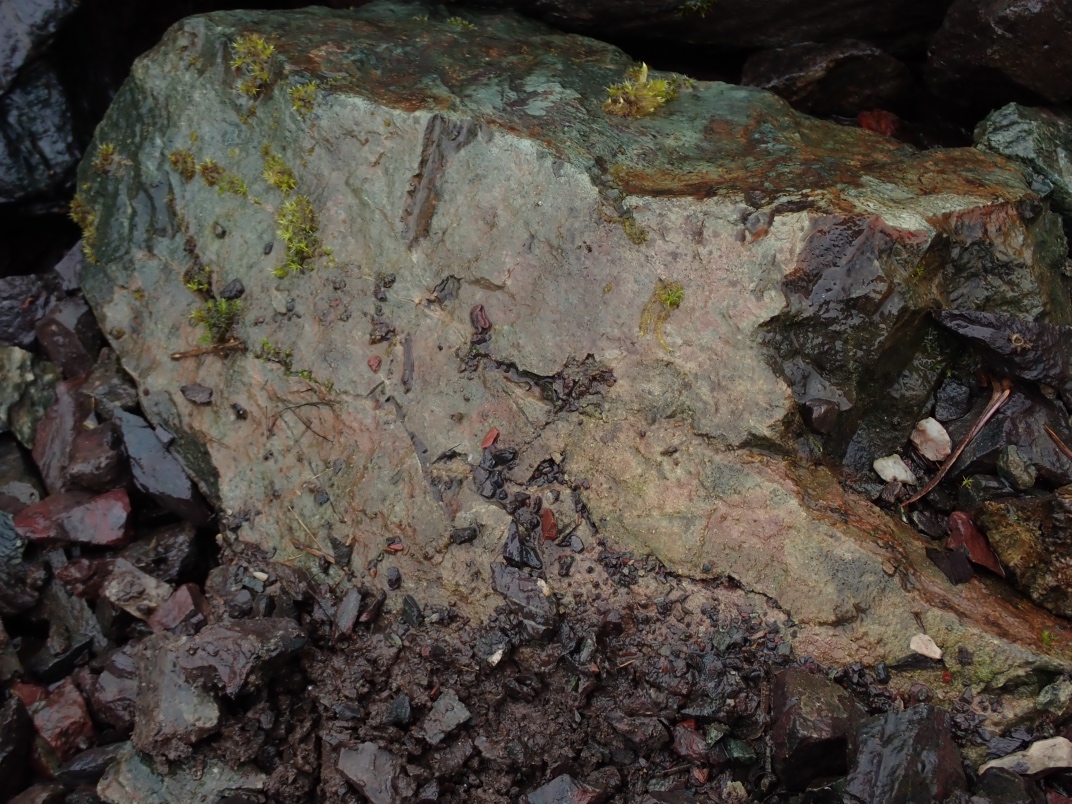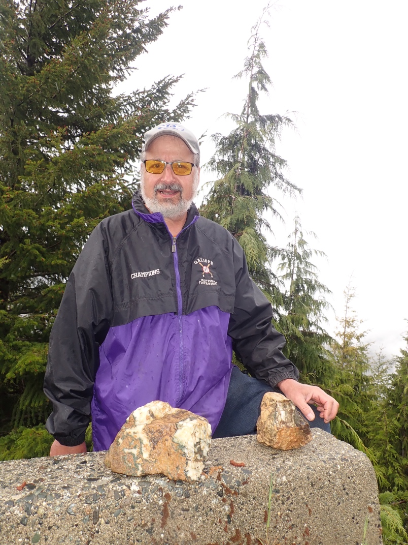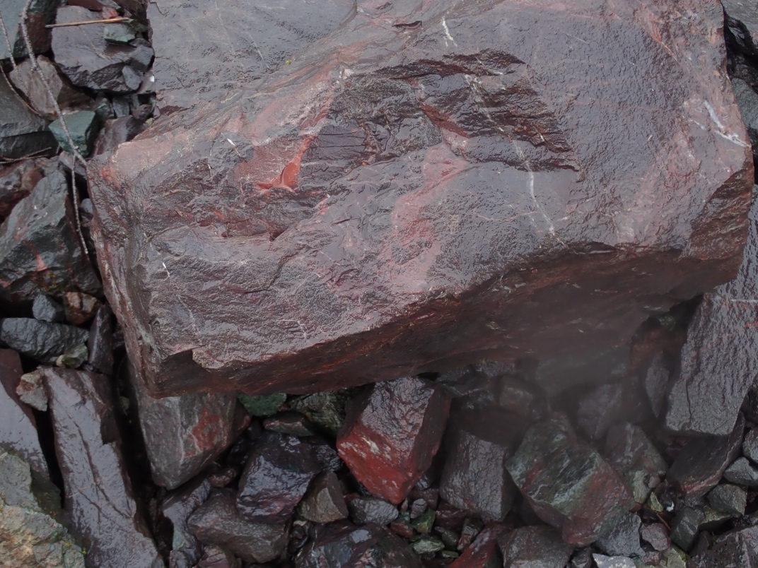 The trip to Mt Arrowsmith afforded the chance to see Dallasite in its original form as part of basalt pillow lava as well as red, green, blue(ish) and purple jaspers. Thanks go to Jim Jeffs (Parksville club) for leading the trip, providing insightful explanations and organizing the gates to be unlocked for access.
