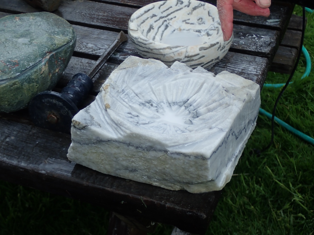 Carving rock bowls – demonstration
