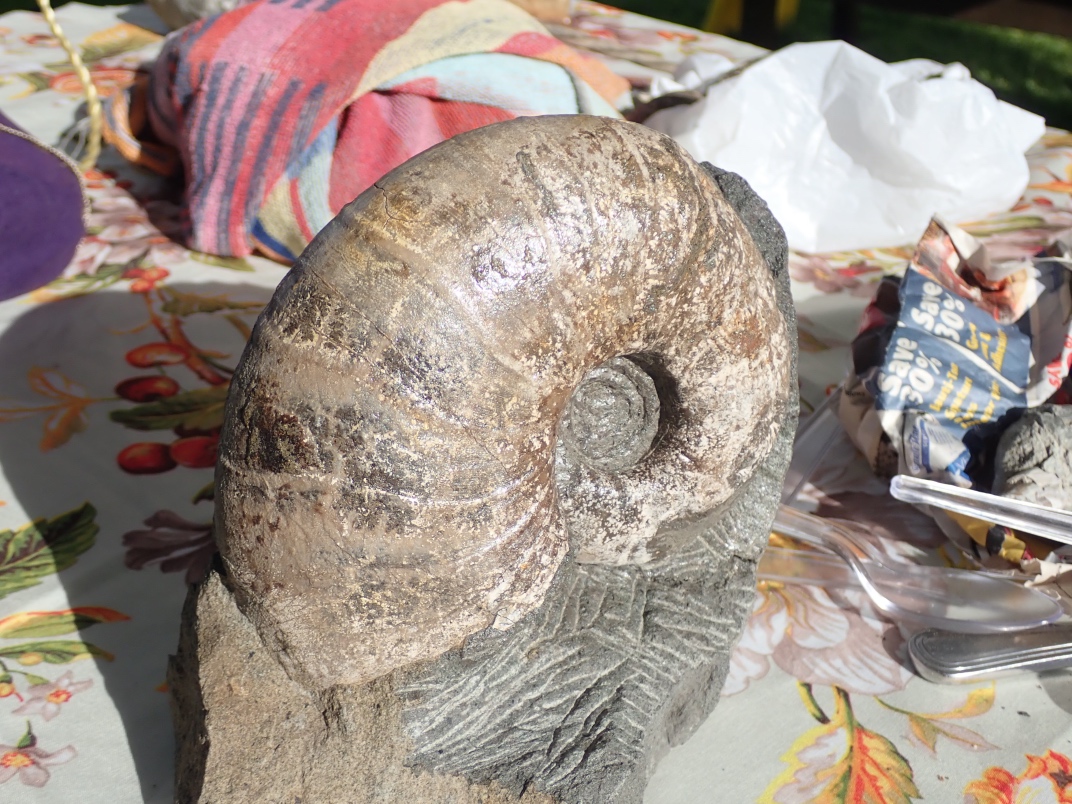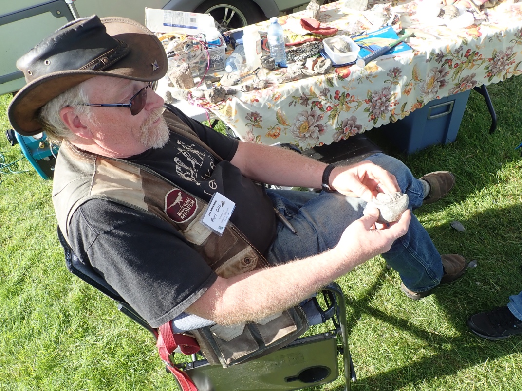 Russ Ball from the Courtney club explained how he uses an air scribe to clean out the matrix surrounding fossils to better expose the structure.